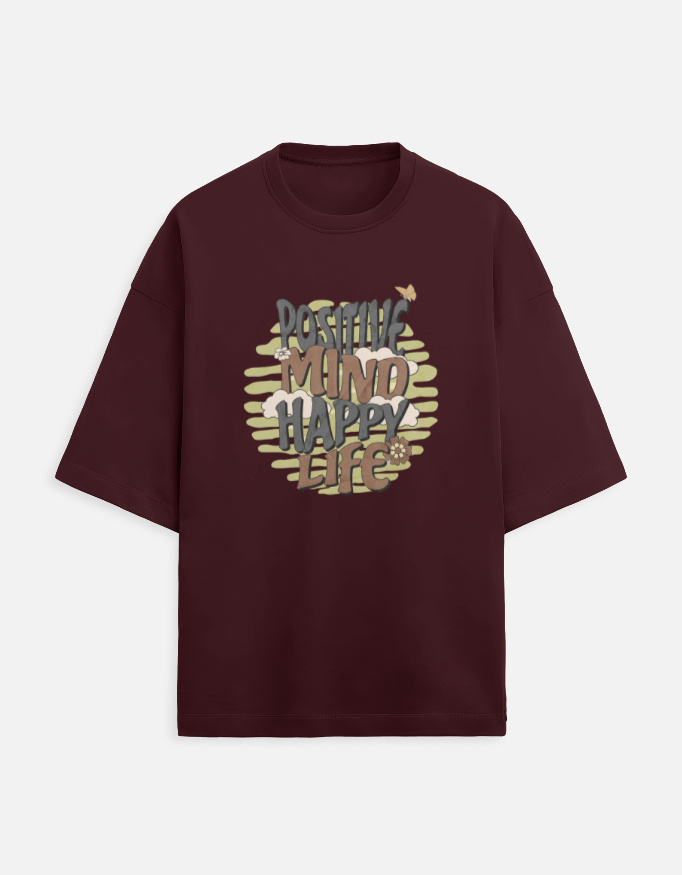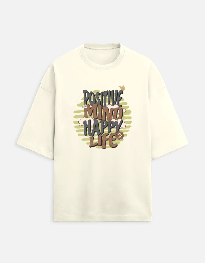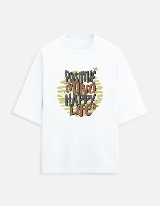 Upgrade your everyday style with the Positive Mind Happy Life Unisex Oversized Tee. Made from a soft 90/10 cotton-polyester blend, this 260 GSM terry-knit tee delivers a premium feel that keeps you comfortable all day. The oversized fit and drop-shoulder design give it a relaxed, effortless look that works for any casual outing or a cozy day at home. Wear it to stay comfortable, stylish, and always radiate positivity.